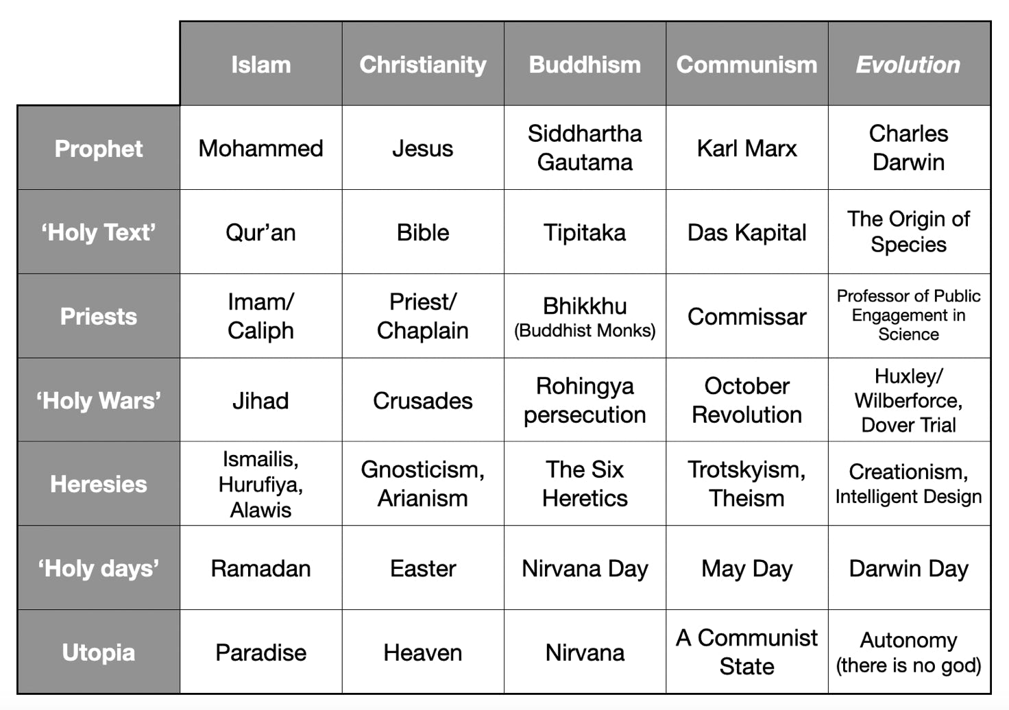 - Why so intolerant? Evolution is defended with such religious fervour and dogmatism because evolutionary theory underpins the atheistic worldview of scientific materialism. Materialism offers explanations of who we are, why we are here, and what is our destiny. This effectively makes it a religion in competition with other religions and ideologies. These “have become the new dogmatists”.